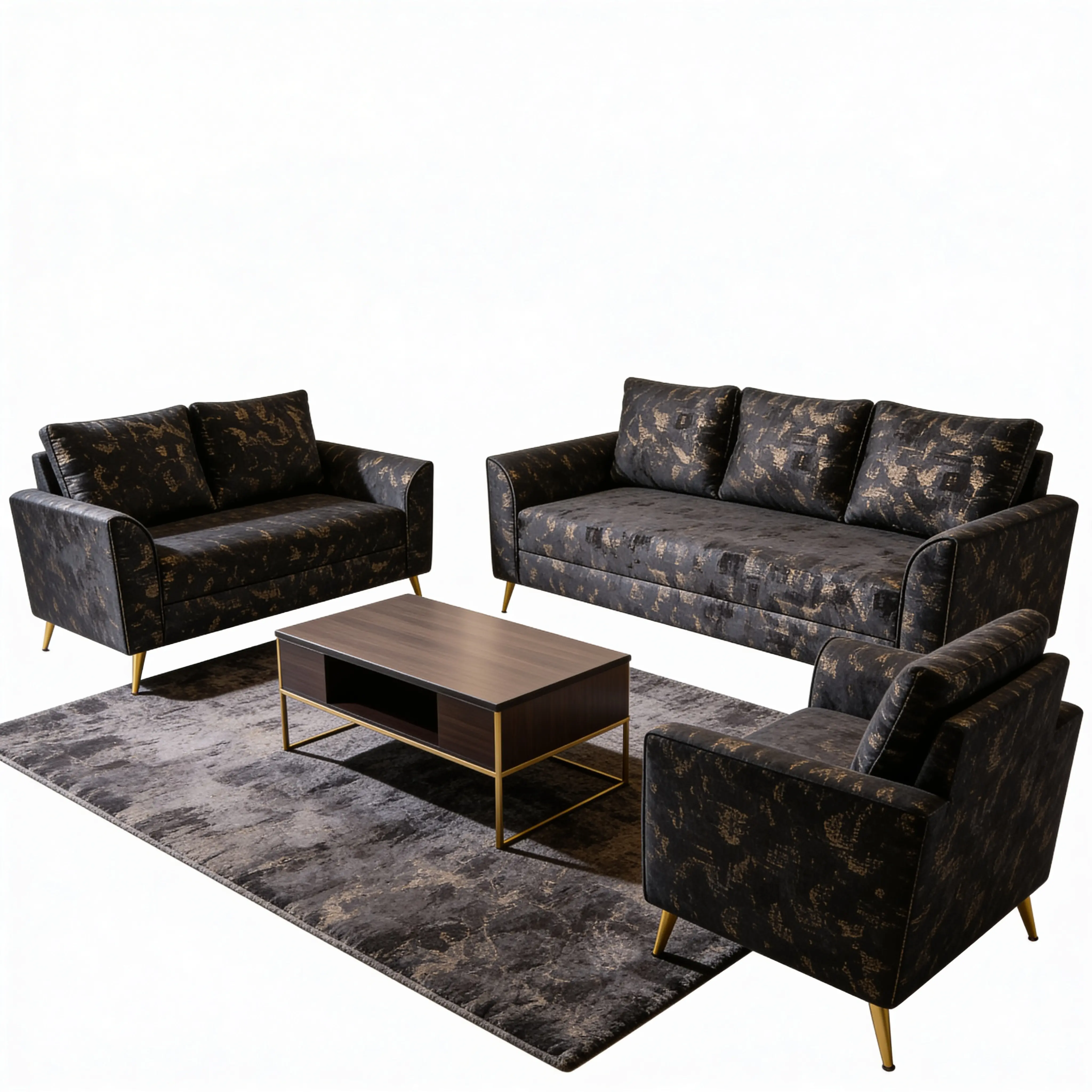 Luxury Black & Gold 3-2-1 Fabric Sofa Set – Colombo Living