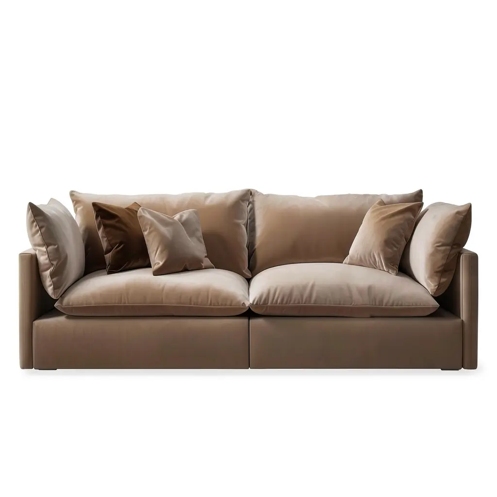 Luxury Brown Velvet Pillow-Back Sofa – Modern Furniture Colombo