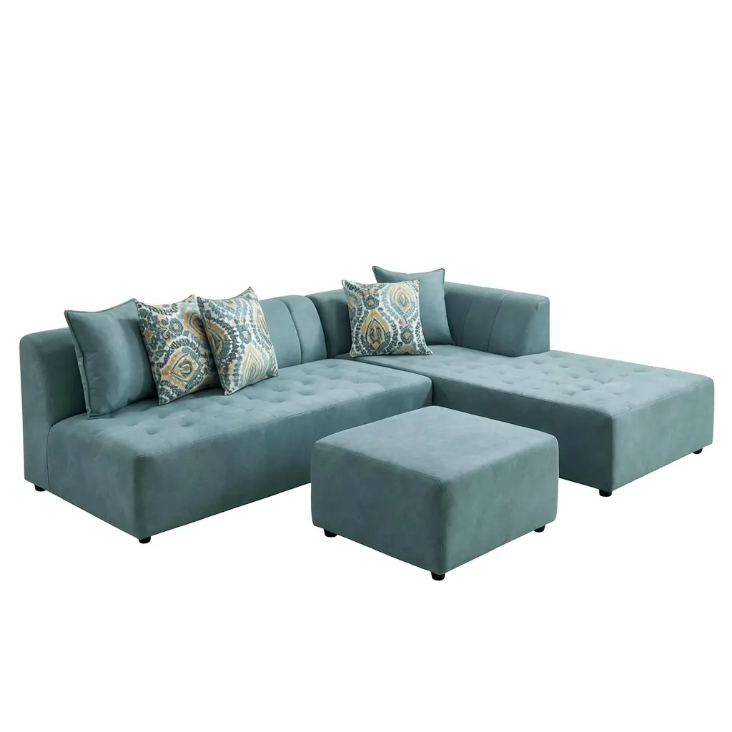 Modern Teal Fabric L-Shape Sofa with Ottoman – Family Furniture Colombo