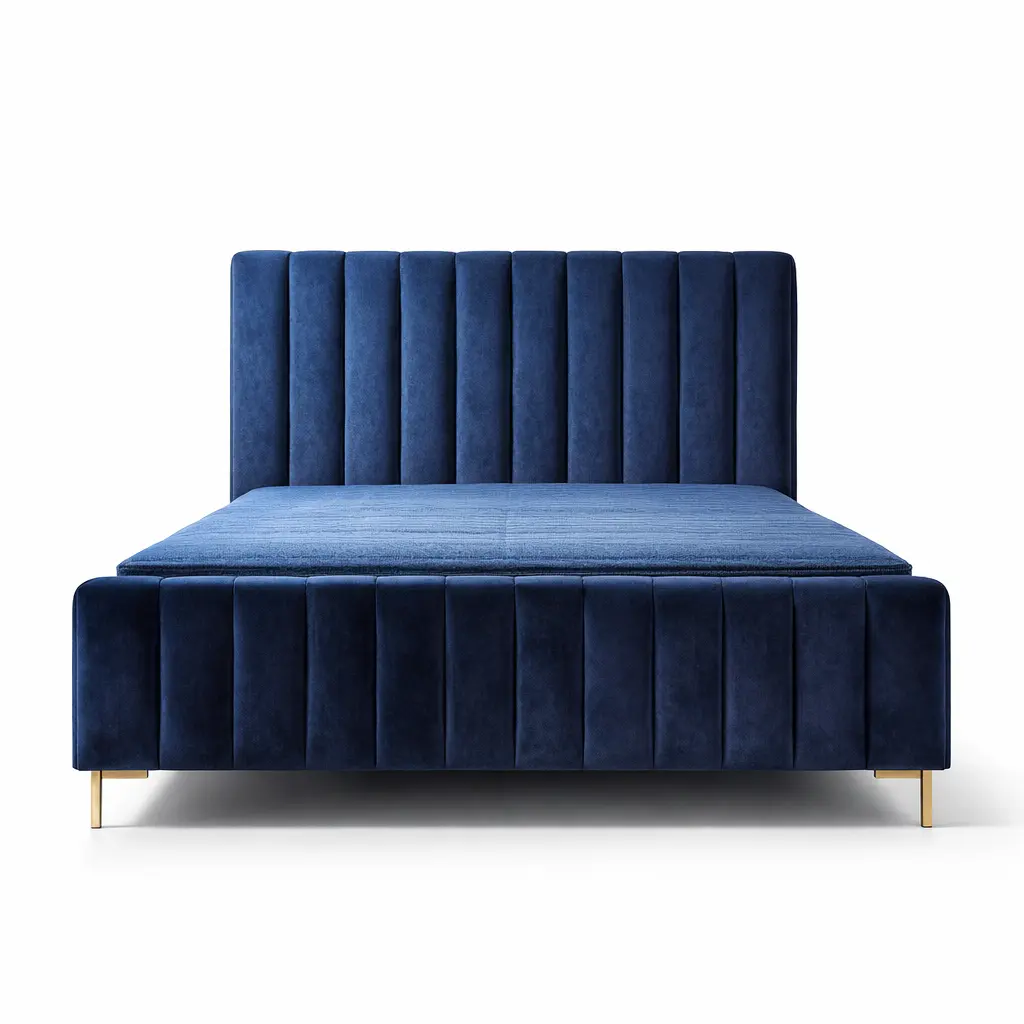 Royal Navy Blue Velvet Bed with Vertical Tufting – Colombo Luxury